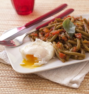 Ovos escalfados com feijão verde